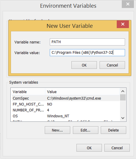 Type PATH as the variable name and set the path to the installation directory of the python shown in the below image.